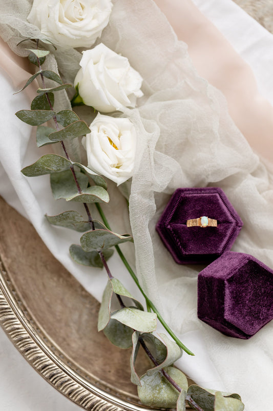 Purple Hexagon Velvet Wedding Ring Box, Jewelry Ring Box, Engagement Ring Box, Bridal Gift Box